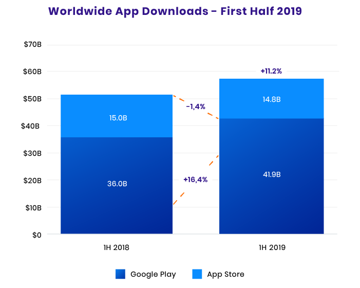 According to Sensotower, the App Store and Google Play users spent a total of $39.7 billion on mobile apps and games during the first half of 2019. This is a huge market you don’t want to miss out on.